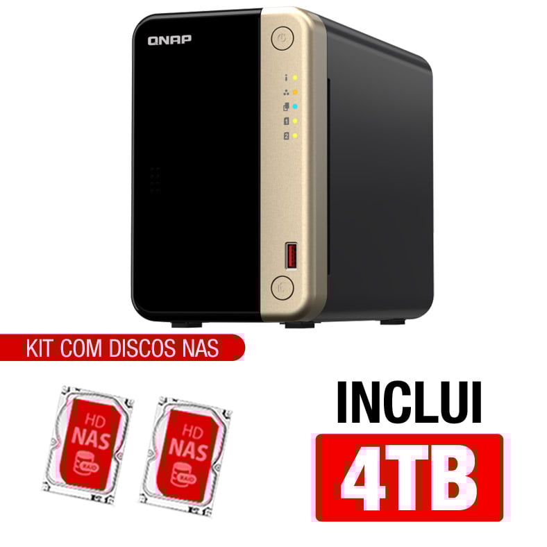 Servidor NAS Qnap TS-264-8G – 4TB – CPU Quad-Core 2,9 GHz – 8GB RAM – 2x 2.5GbE – Inclui 2 HDs NAS de 2TB -NAC
