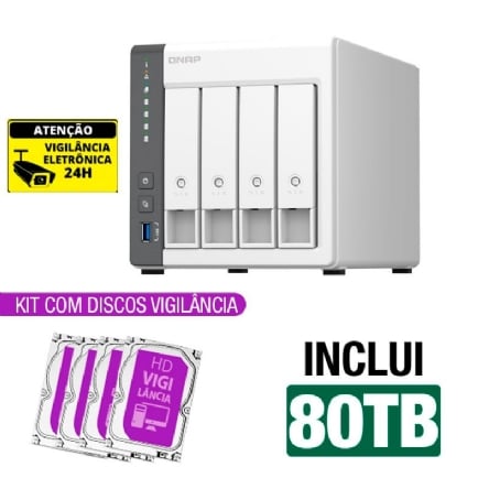 Servidor NAS Qnap TS-433 – 80TB – Quad-Core 2.0GHz – 4GB RAM – 1x 2.5Gb – 1x 1Gb – Inclui 4 HDs Vigilância de 20TB -NAC