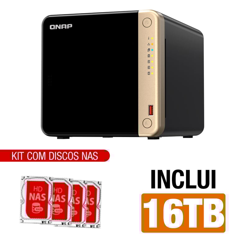 Servidor NAS Qnap TS-464-8G – 16TB – Quad-Core 2,9 GHz – 8GB RAM – 2x 2.5 Gigabit – Inclui 4 HDs NAS de 4TB -NAC