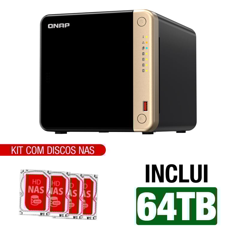 Servidor NAS Qnap TS-464-8G – 64TB – Quad-Core 2,9 GHz – 8GB RAM – 2x 2.5 Gigabit – Inclui 4 HDs NAS de 16TB -NAC