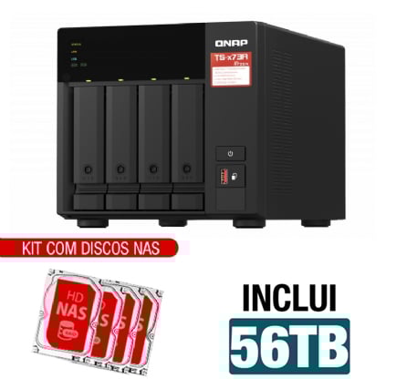 Servidor NAS Qnap TS-473A-8G 56TB – Quad-Core 2.2GHz – 8GB RAM – 2x 2.5Gb – Inclui 4 HDs NAS de 14TB -NAC