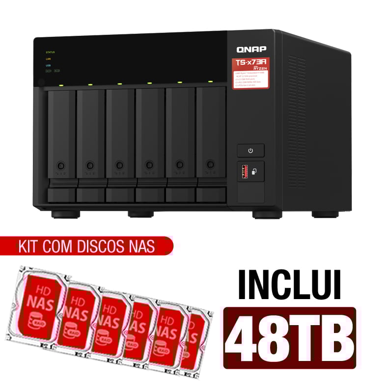 Servidor NAS Qnap TS-673A – 48TB – Quad-Core 2.2 Ghz – 8GB RAM – 2x 2,5Gbe – Inclui 6 HDs NAS de 8TB -NAC