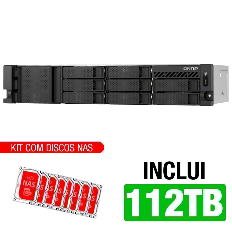 Servidor NAS QNAP TS-855EU-8G – 112TB – Octa-Core 2.8GHz – 8GB RAM – 2x 2.5GbE – Inclui 8 HDs NAS de 14TB -NAC