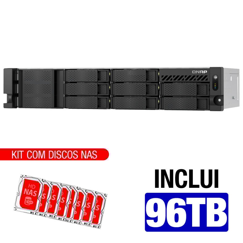 Servidor NAS QNAP TS-855EU-8G – 96TB – Octa-Core 2.8GHz – 8GB RAM – 2x 2.5GbE – Inclui 8 HDs NAS de 12TB -NAC