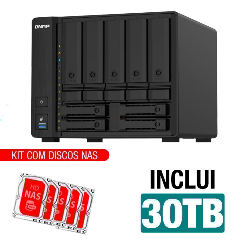 Servidor NAS QNAP TS-932PX-4G – 30TB – Quad-Core 1.7GHz – 4GB RAM – 2x 10GbE SFP+ – 2x 2,5 GbE – Inclui 5 HDs NAS de 6TB -NAC