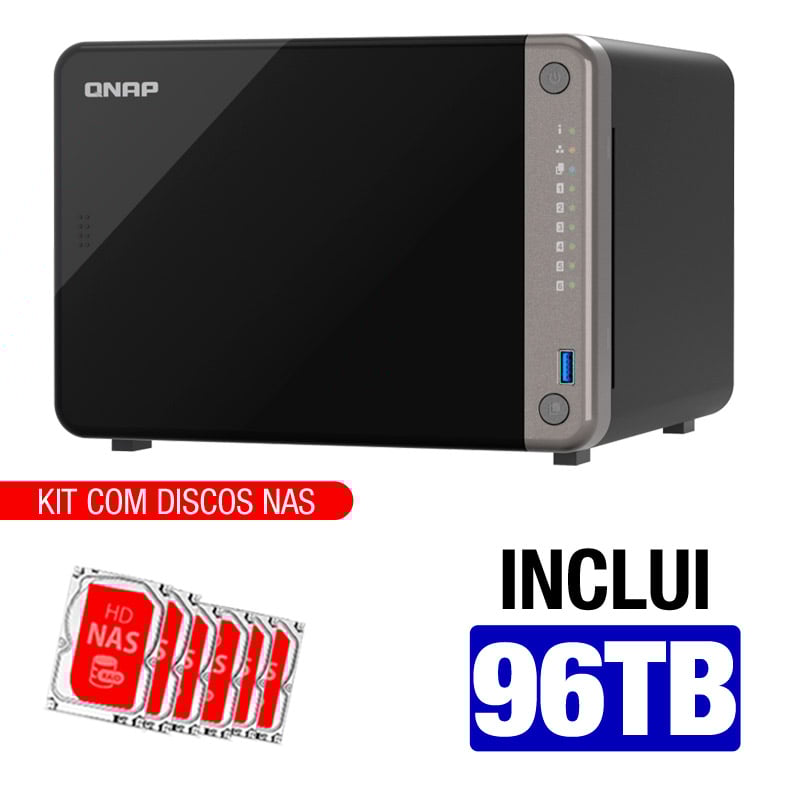 Servidor NAS Qnap TS-AI642 IA – 96TB – ARM Cortex Octa-Core – 8GB RAM – 1x 2.5Gbe – 2x 1Gbe – Inclui 6 HDs NAS de 16TB -NAC