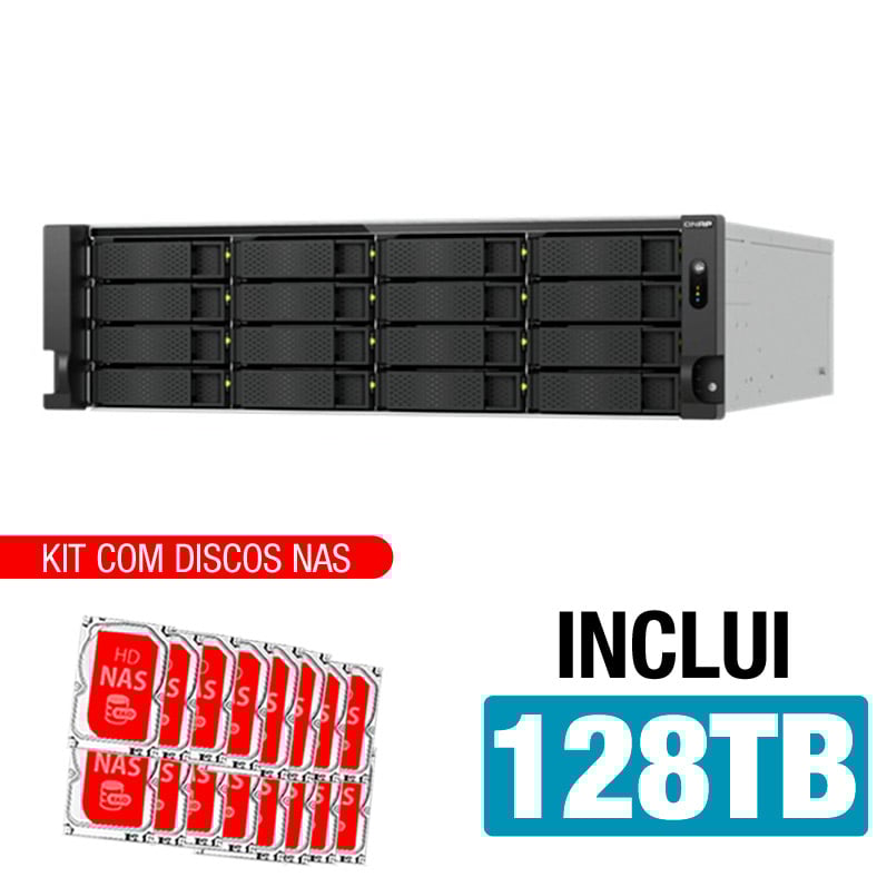 Servidor NAS Qnap TS-H1677AXU-RP-R7-32 – 128TB – Ryzen 7 Octa-Core – 32GB RAM – 2x 10G – 2x 2.5Gbe – Inclui 16 HDs NAS de 8TB – Fonte Redundante -NAC