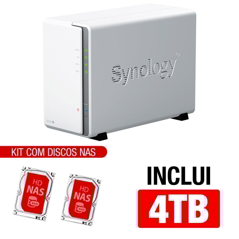 Servidor NAS Synology DS223J – 4TB – CPU Realtek RTD1619B – 1GB DDR4 – 1x 1GbE – Inclui 2 HDs NAS de 2TB -NAC