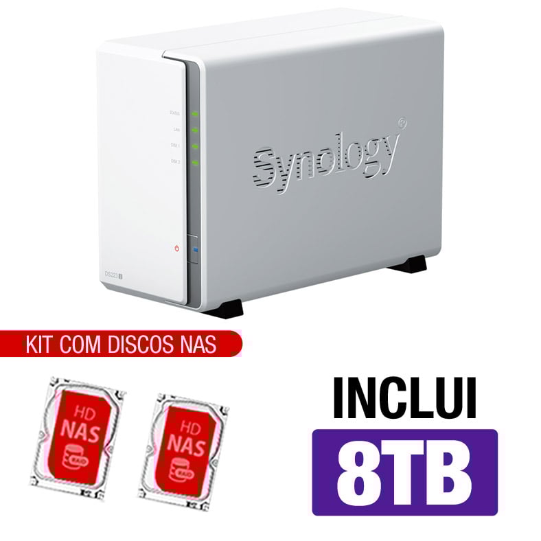 Servidor NAS Synology DS223J – 8TB – CPU Realtek RTD1619B – 1GB DDR4 – 1x 1GbE – Inclui 2 HDs NAS de 4TB -NAC