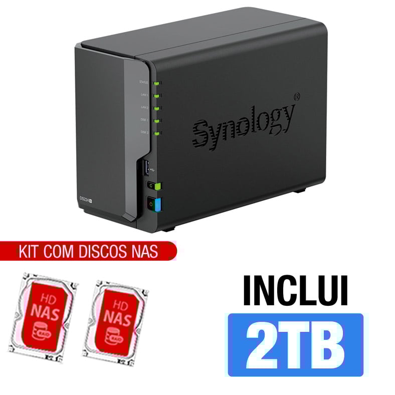 Servidor NAS Synology DS224+ – 2TB – Quad-Core 2.0 Ghz – 2GB RAM – 2x 1Gbe – Inclui 2 HDs NAS de 1TB -NAC
