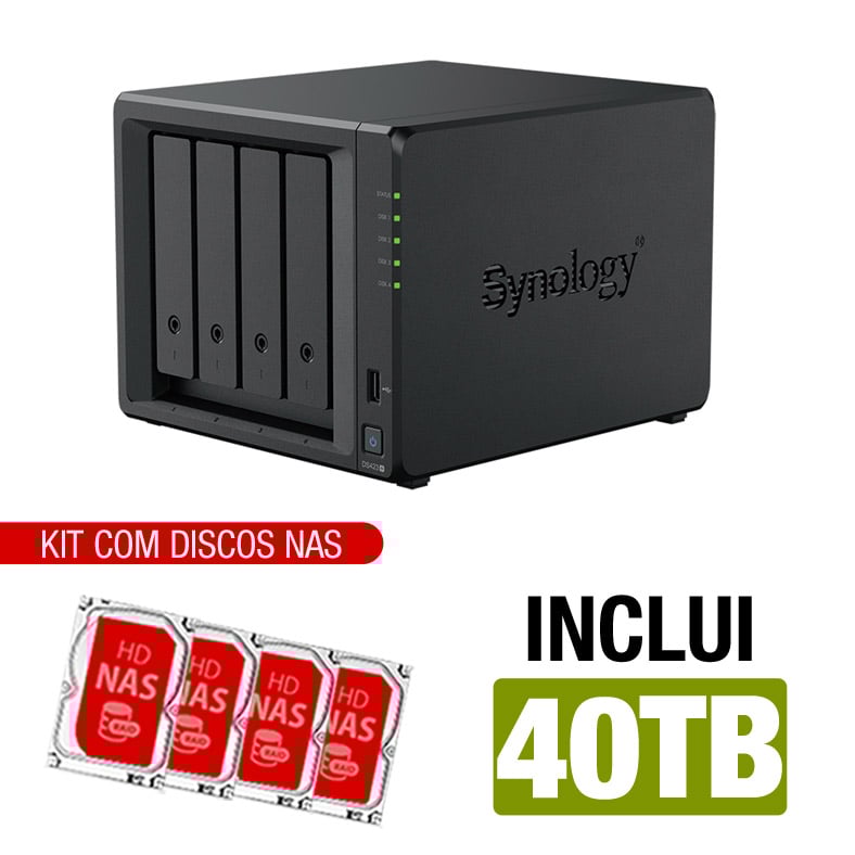 Servidor NAS Synology DS423+ 40TB – Quad-Core 2.0GHz – 2GB DDR4 – 2x 1GbE – Inclui 4 HDs NAS de 10TB -NAC