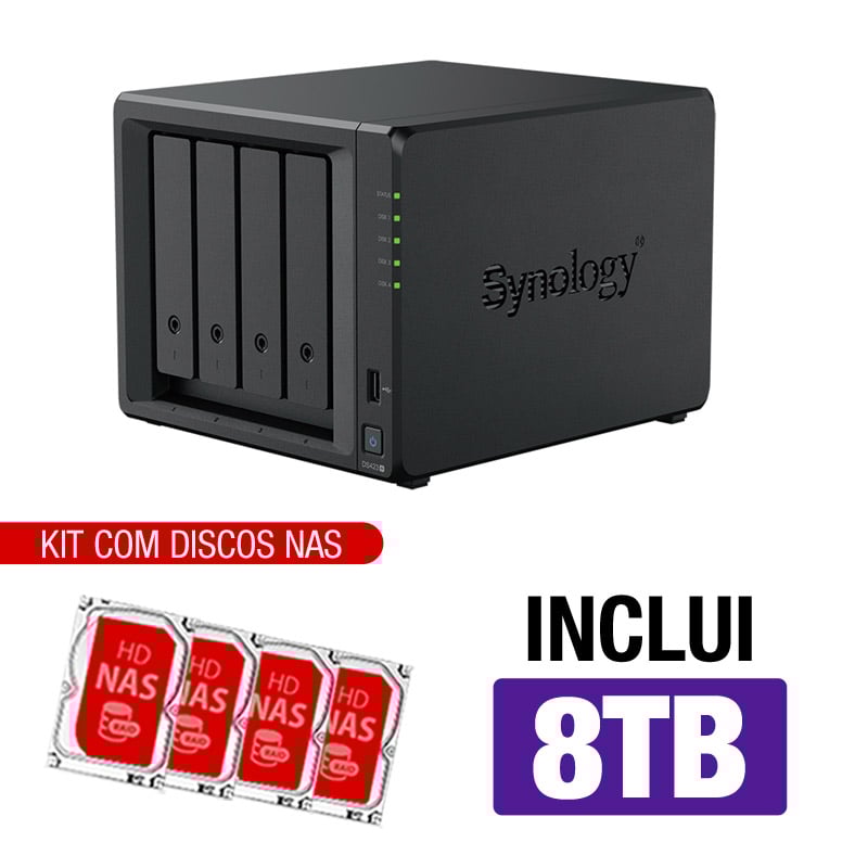 Servidor NAS Synology DS423+ 8TB – Quad-Core 2.0GHz – 2GB DDR4 – 2x 1GbE – Inclui 4 HDs NAS de 2TB -NAC