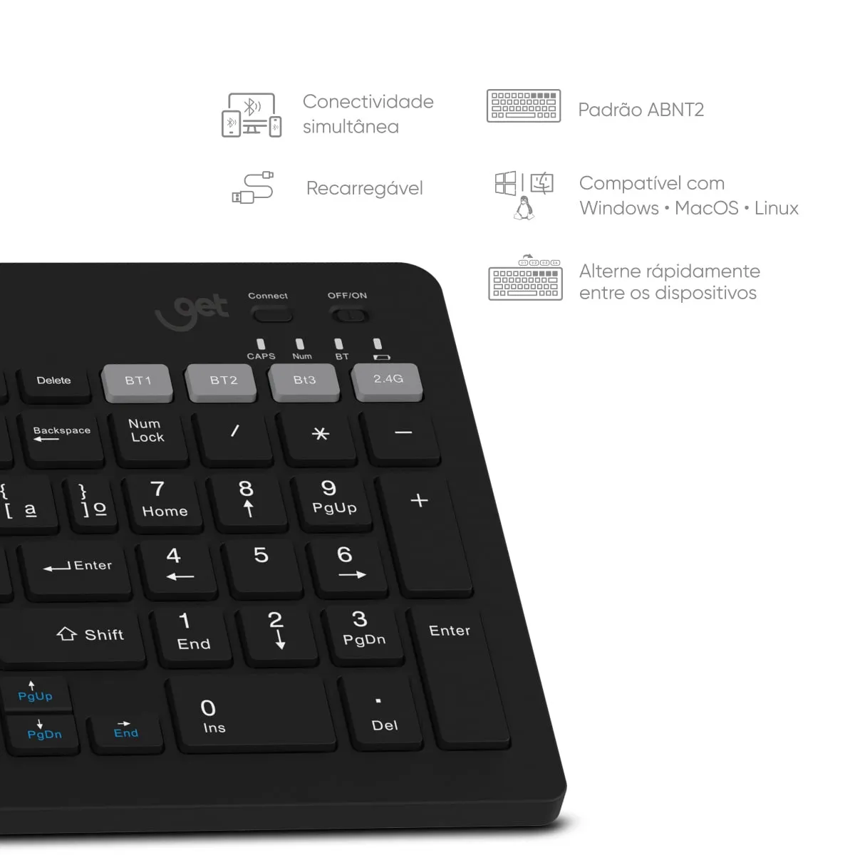Teclado Sem Fio Bluetooth Slim Get Shift Preto